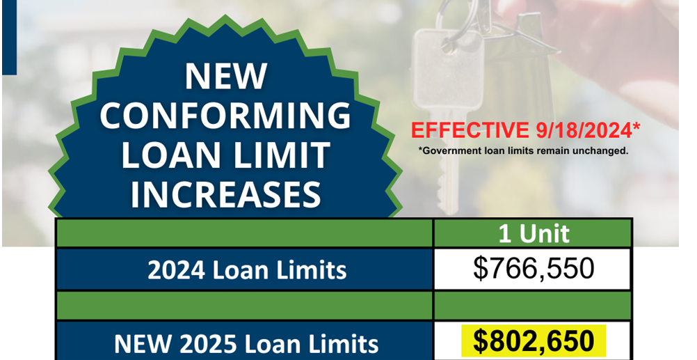 Conventional loan limits have been increased and can be applied for any loan closing after October 1, 2024.